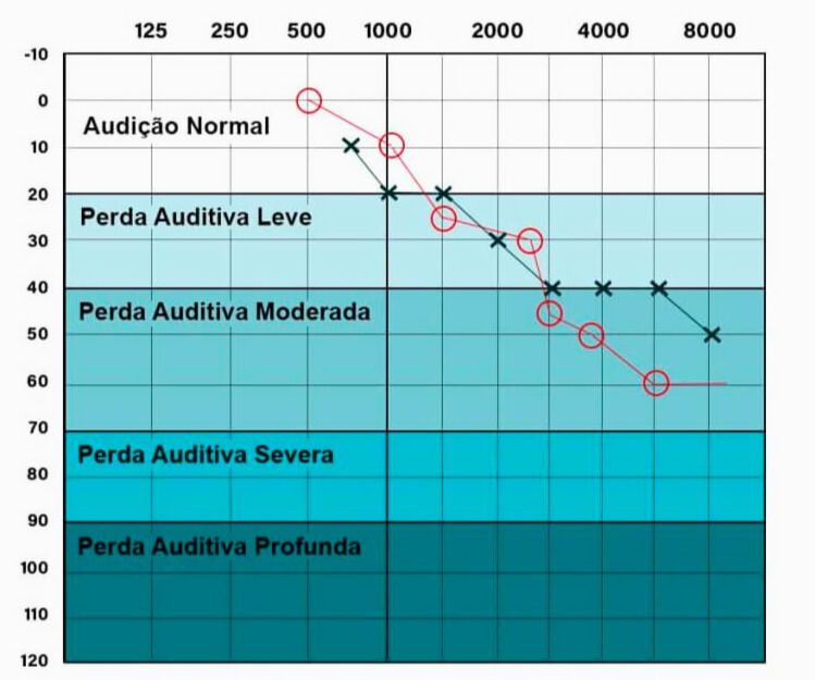 41-70 dB: Perda auditiva moderada